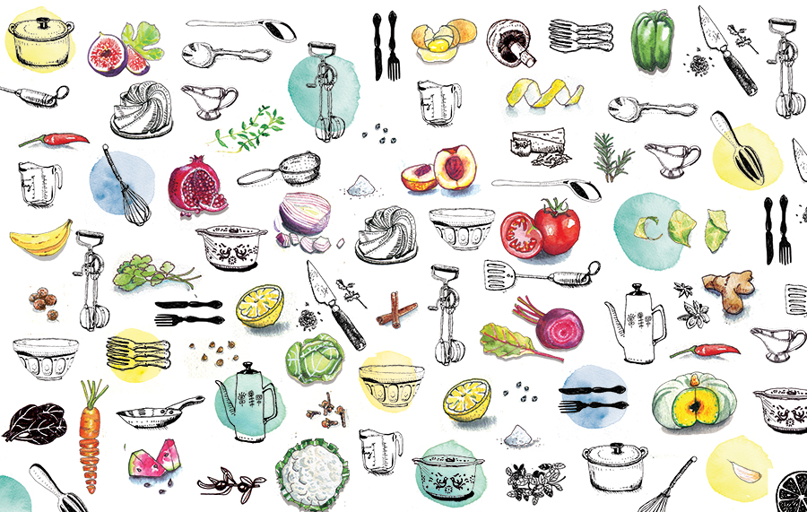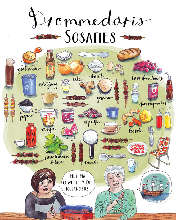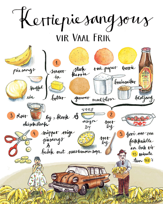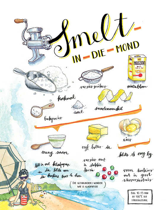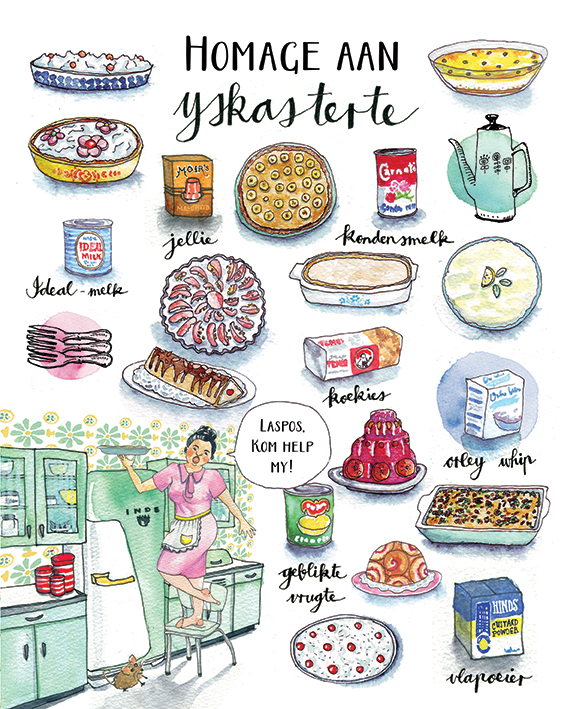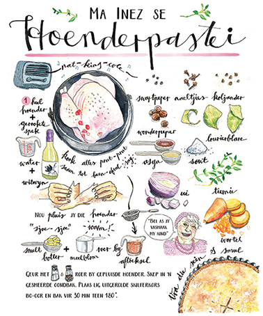 Editorial illustration and conceptual layout design. Errieda is a national treasure of South Africa’s food industry. She has a radio show for RSG, has written numerous books, and is a content creator for various cooking shows. Hard bound 400 page volume published by NB Uitgewers.
