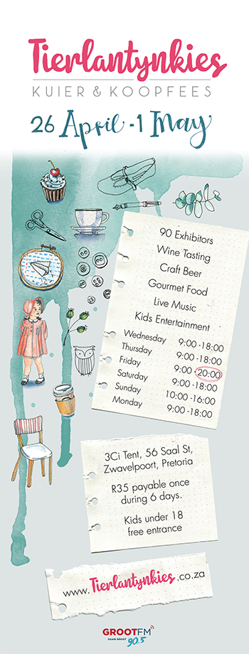 Tierlantynkies is a maker’s market and a celebration of creativity. This highlight on Pretoria’s calendar is held twice a year over five days drawing close to 100 exhibitors and 10 000 visitors..