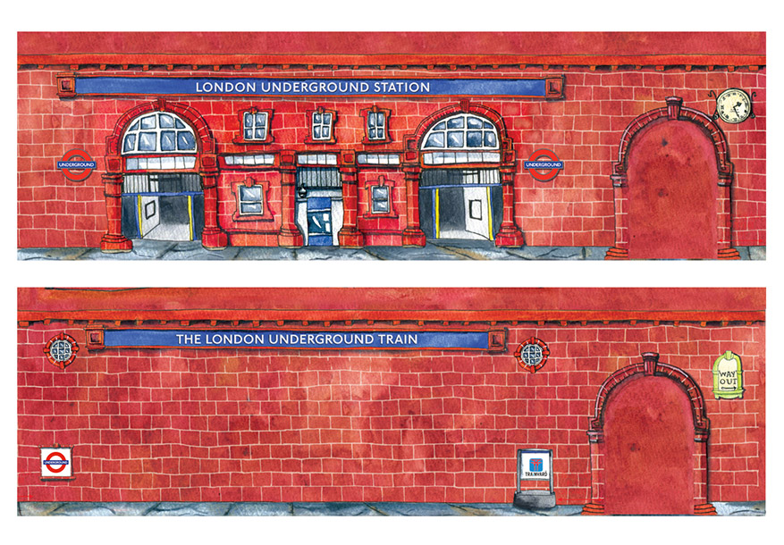 Illustrated packaging to represent the iconic London Underground stations designed by Leslie Green. This 3D puzzle train project was masterminded by Trainyard.Ltd. It is done under licence for Transport for London and can be found on the shelves of the gift shop at The London Transport Museum. Click here to buy a train set.